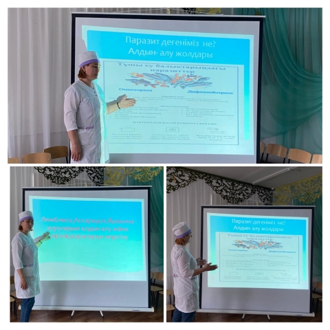 Балабақша медбикесі Асанова В.А. "Лямблиоз, аскаридоз, қышыма ауруларының алдын алу және сақтық шараларын жүргізу" және "Эхинококоз және альвеококкоздың алдын алу шаралары" тақырыптарында педагог мамандармен кеңес жүргізіп, ауру белгілерімен таныстырды